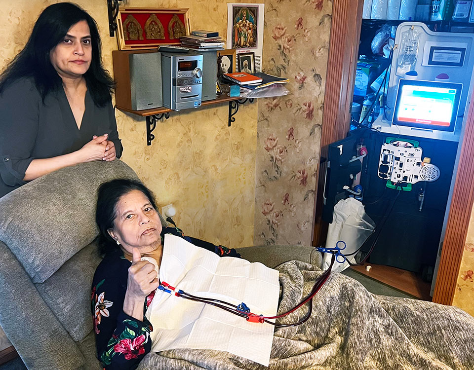 Like in-center dialysis, you’ll be connected to the machine via your dialysis access, which filters your blood through a dialyzer to remove toxins, waste, and excess fluid, then returns clean blood to you.